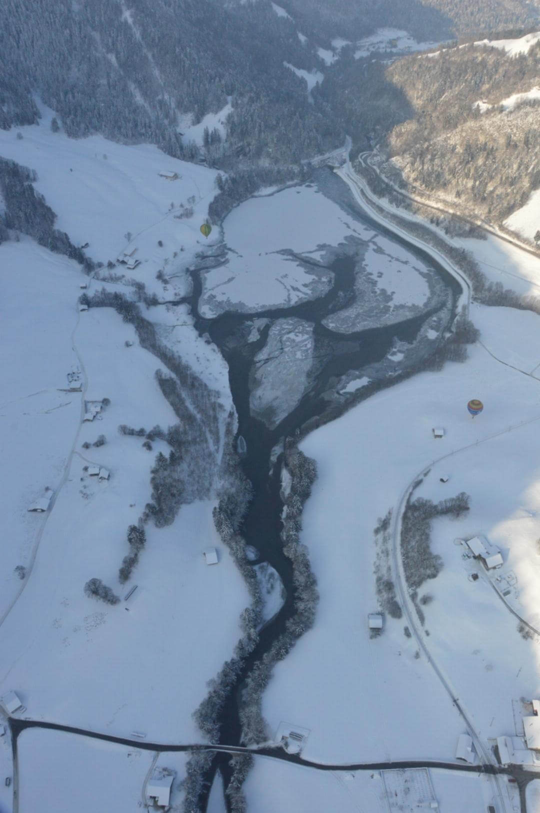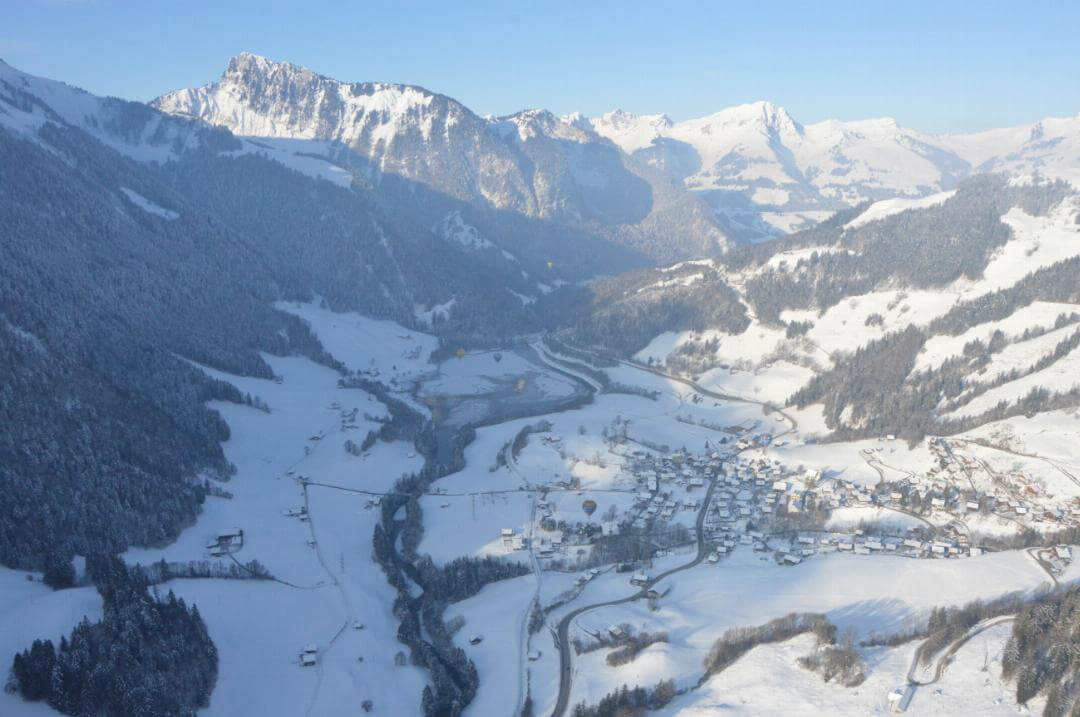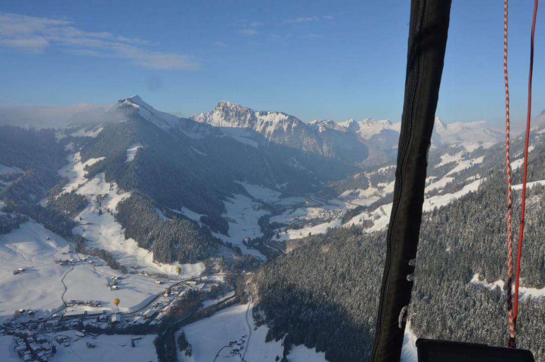 Doch unser Ballon schwebt sanft steigend empor und wir haben bald die beste Aussicht über das Pays-d’Enhaut, die man sich vorstellen kann. Immer wieder steigen und sinken wir höher und tiefer, die Richtung wird vom Wind bestimmt.