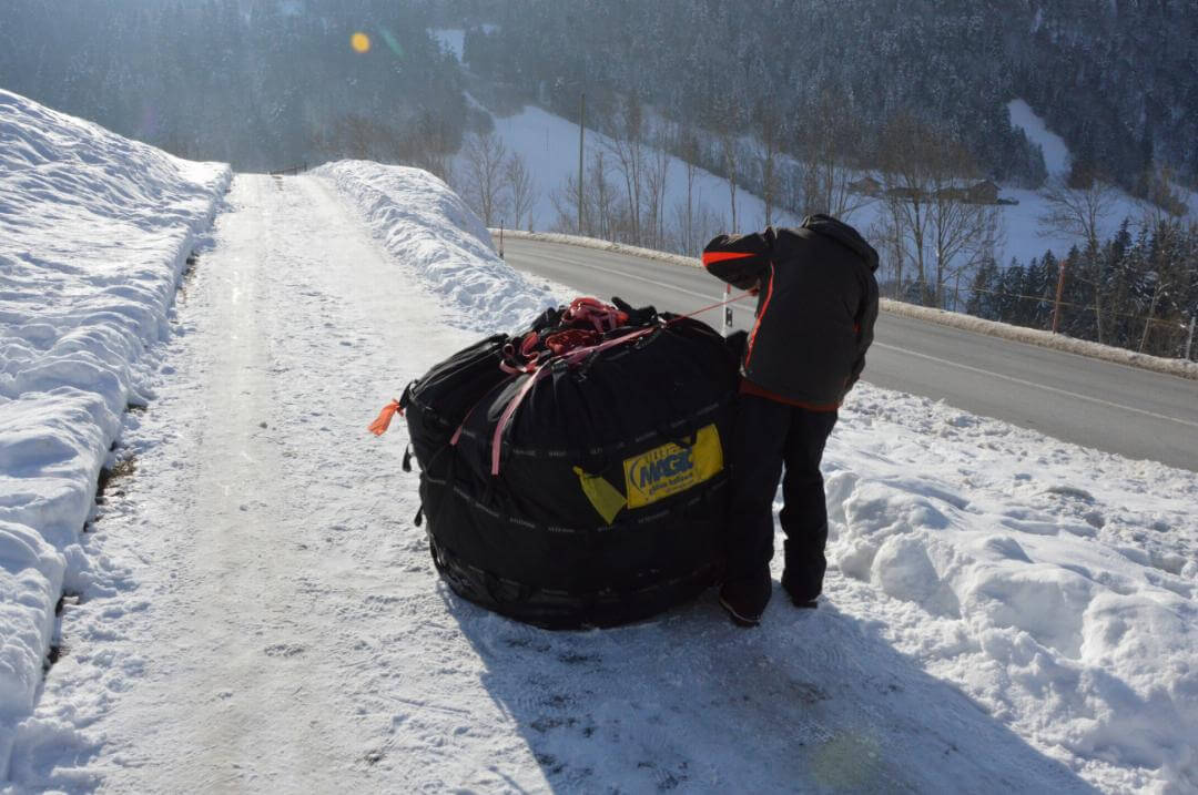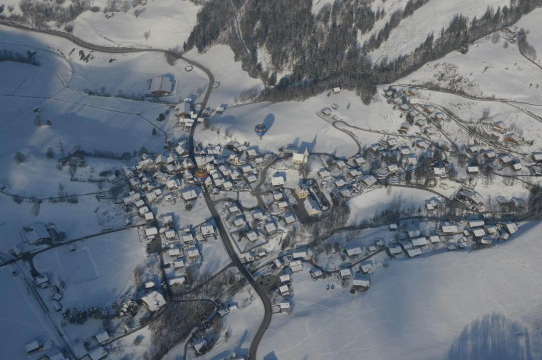 Es ist bitterkalt, doch es verspricht ein wunderschöner Wintertag mit bester Sicht zu werden, als ich mich auf dem Startplatz unterhalb des Dorfes einfinde. Es herrscht bereits ein reges Treiben: Einige Ballone sind im Begriff zu starten, andere machen sich bereit und befüllen die Ballone mit heisser Luft.